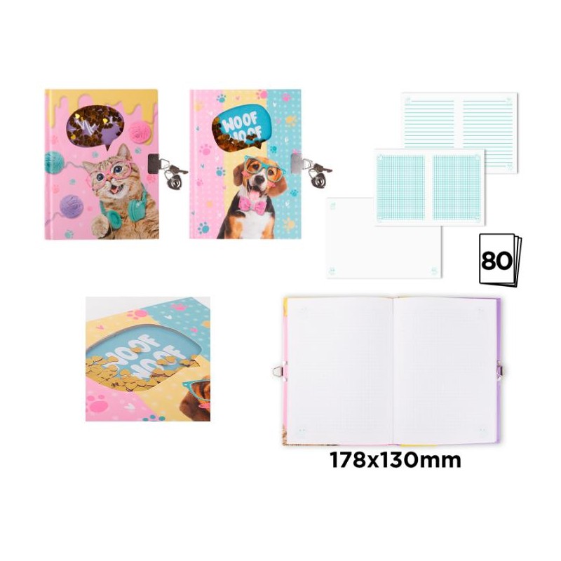 Journal intime 17,8x13cm 80 feuilles couverture rigide + cadenas Chat / chien