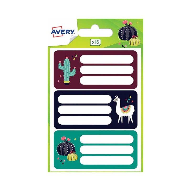 Etiquette écolier 34x76mm Lama et cactus pochette de 15
